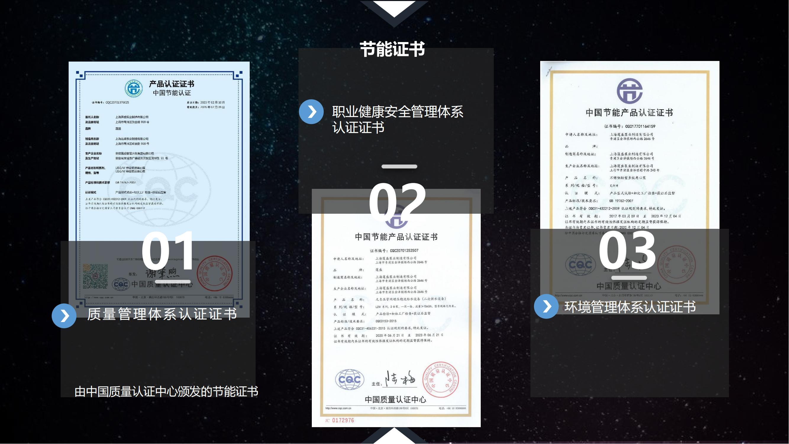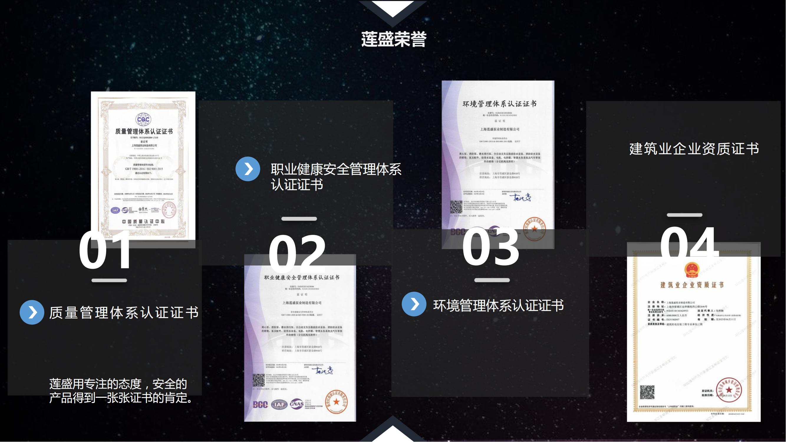 蓮盛泵業(yè)用產(chǎn)品為自己獲得一張張資質(zhì)證書的肯定。